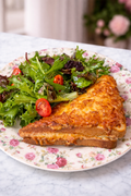 Soft bread, béchamel, ham & gruyère cheese. Served with salad and tomatoes
