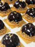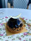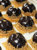Dark chocolate mousse and creamy crème brûlée mousse with vanilla sable biscuit.